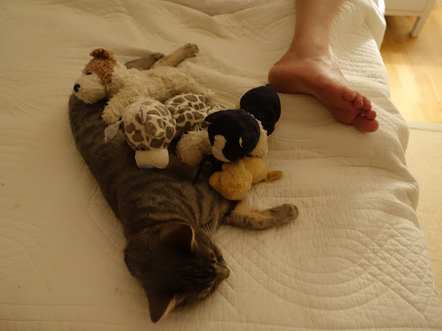 We thought he was coming right, but no. I consulted Juantiz. She's like a vet is our Juanitz. She said she thought he was OK. As long as he's drinking and eating, he's OK. Poor wee blight. The thing is, taking the wee guy to the vet right now is complicated. One at a time, standing outside (or sit in the car hoping you'll know when you are called in). I admire our vet making things so absolute. She is precise and super clean (and lovely) but it becomes tricky right now if we need to take him to the vet. Thanks Juanitz, we will continue to monitor the wee blight.